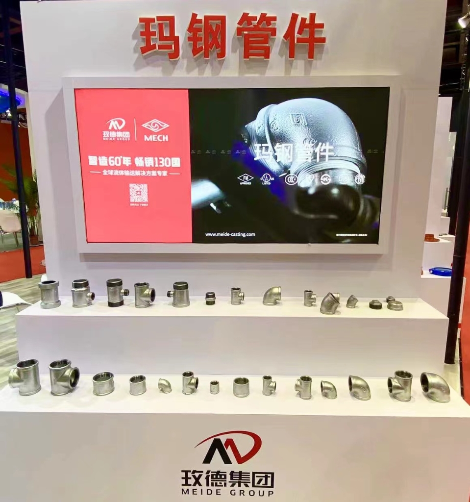 玫德集团有限公司玛钢管件年产量全球第一,英、美、德标准,系列完整,规格齐全,抗拉强度≥350MPa,延伸率≥10%;环保镀锌,无芳香烃防锈油。