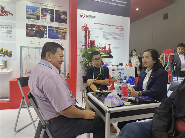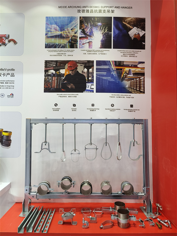 展会期间,玫德安排了满满的展示环节,多角度、全方位介绍玫德产品与解决方案,包含快装管道系统、金属软管、支吊架系列产品、阀门产品等。