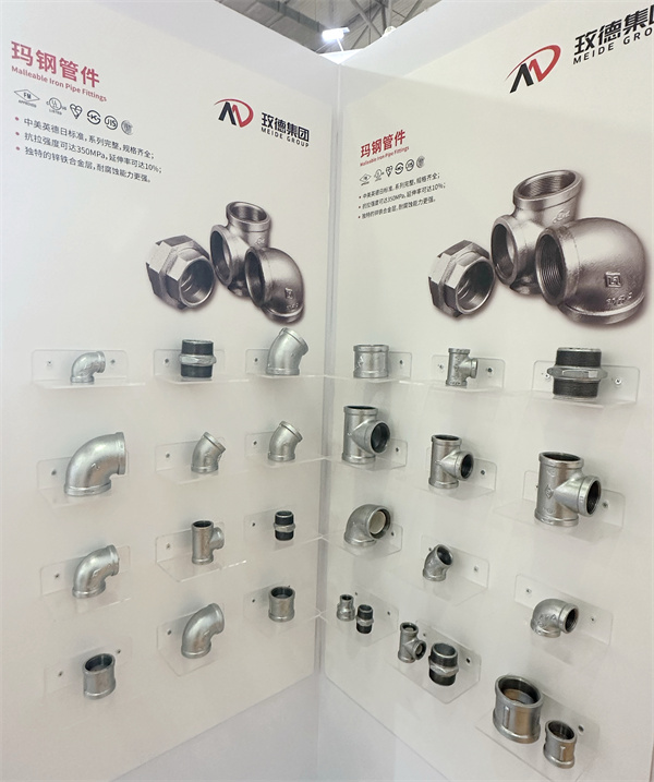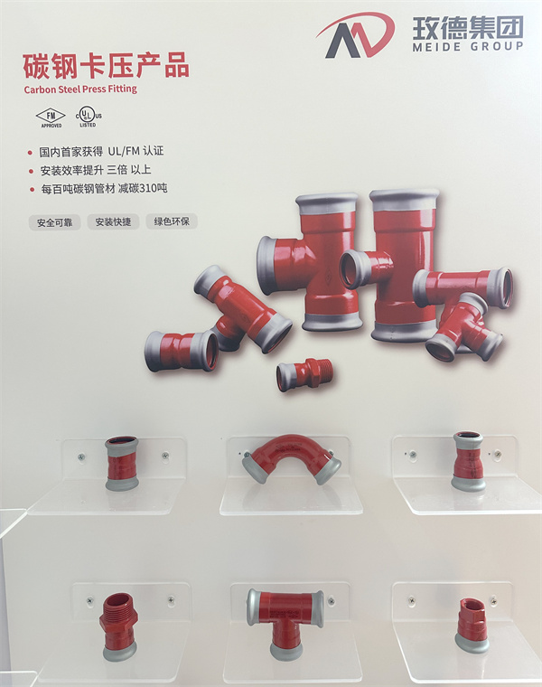 本次展会,玫德带来了玛钢管件、沟槽管件、消防系列阀门、智能阀门、直缝钢管、不锈钢管材管件、金属软管、碳钢卡压等一站式产品。