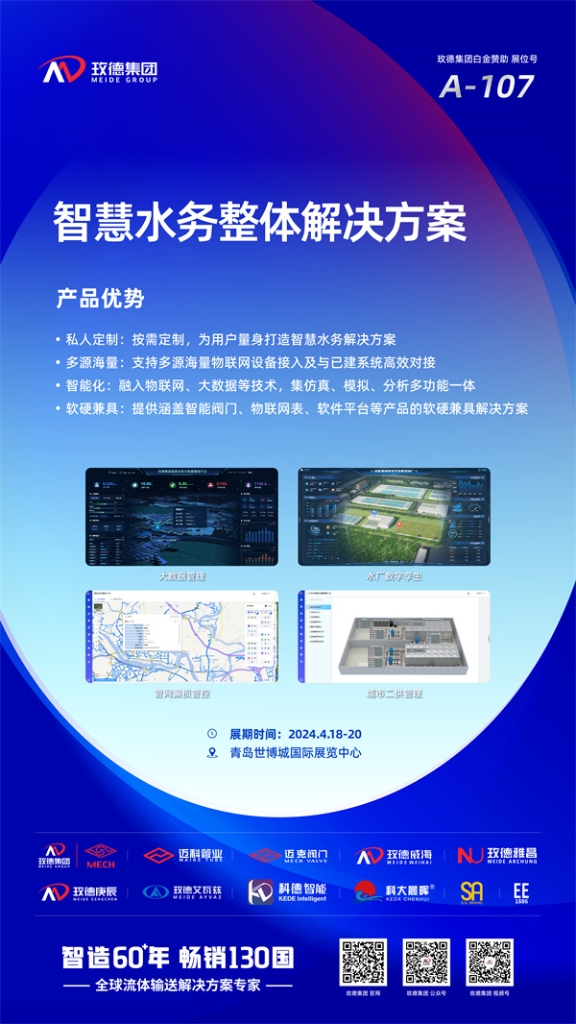 玫德集团水务领域产品即将亮相中国城镇供水排水协会2024年会暨城镇水务技术与产品交流展示会