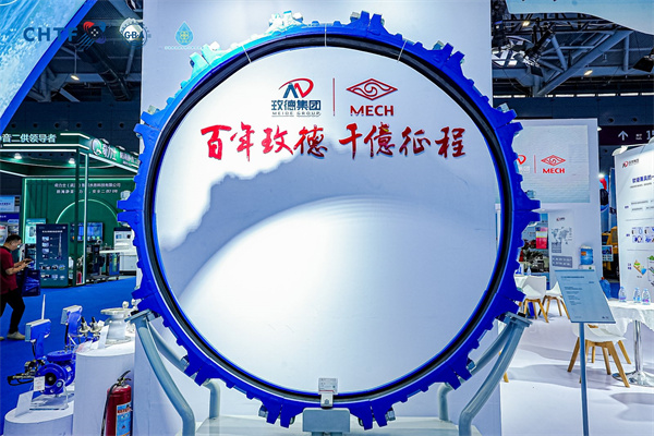 本次展会玫德不仅跟现场专家、同行分享了玫德智慧,还展出了大沟槽柔性连接系统、大口径沟槽管卡、水厂一站式解决方案、二次供水一站式解决方案、城市管网一站式解决方案、直饮水系统、球墨铸铁管材管件等一站式产品及解决方案。