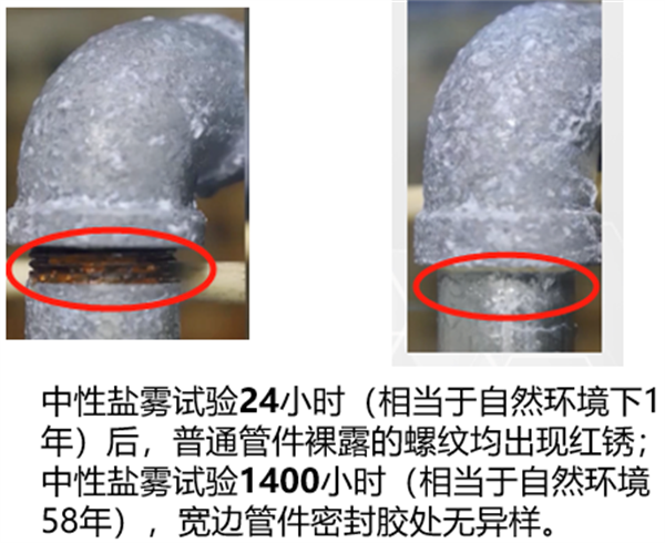 在严格的中性盐雾试验中,玫德宽边玛钢燃气管件表现惊人,历经 1400 小时依然无锈蚀迹象。而普通玛钢管件在同样试验条件下,短短 24 小时便出现红锈,二者防腐性能高下立判。这一卓越成绩充分证明了玫德管件强大的抗腐蚀能力,即使在恶劣环境中,也能长期保持良好性能,大大延长了使用寿命。