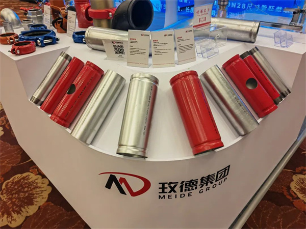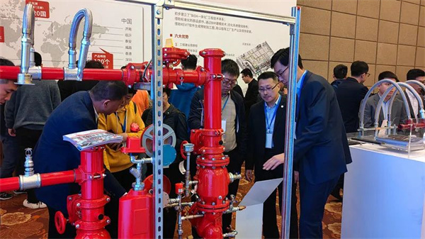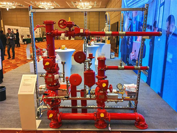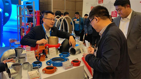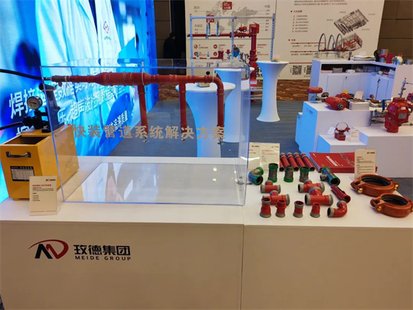 交流会上,玫德展出了沟槽湿式报警阀、法兰式雨淋报警阀、空气延时水流指示器、区域控制阀、快装管卡、大口径钢管沟槽连接解决方案、管道预制集成解决方案、迈克牌消防软管、镀锌钢管、消防用碳钢卡压产品等产品,吸引了大批参观者驻足。