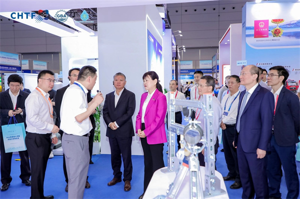 深圳市人民政府副市长张华等领导莅临玫德展位参观考察,玫德集团建筑BG总裁杨海宁接待并详细讲解各类产品,展现玫德产品的技术优势